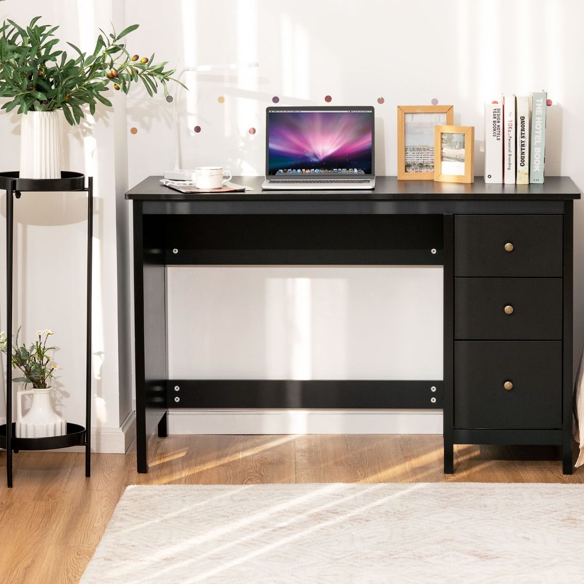 Een opgeruimd bureau werkt nu eenmaal sneller. Daarom is dit model voorzien van drie ruime lades aan de zijkant. Hierin berg je pennen, notitieboekjes, opladers en belangrijke papieren direct uit het zicht op. Zo blijft je werkblad vrij en kun jij je concentreren op je taken. De ronde handgrepen en metalen geleiders zorgen ervoor dat de lades soepel openen en sluiten.